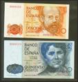 Set of 6 banknotes from the Bank of Spain of 200 Pesetas, 500 Pesetas, 1000 Pesetas, 2000 Pesetas, 5000 Pesetas and 10000 Pesetas, all the banknotes issued between 1979 and 1985 (including the 5000 Pesetas and 10000 Pesetas, most sets are known in the absence of one of these two bills), all without series and with the same low numbering 001115. (Edifil 2017: 480, 476, 477, 479, 478, 481). Very rare set. Uncirculated.