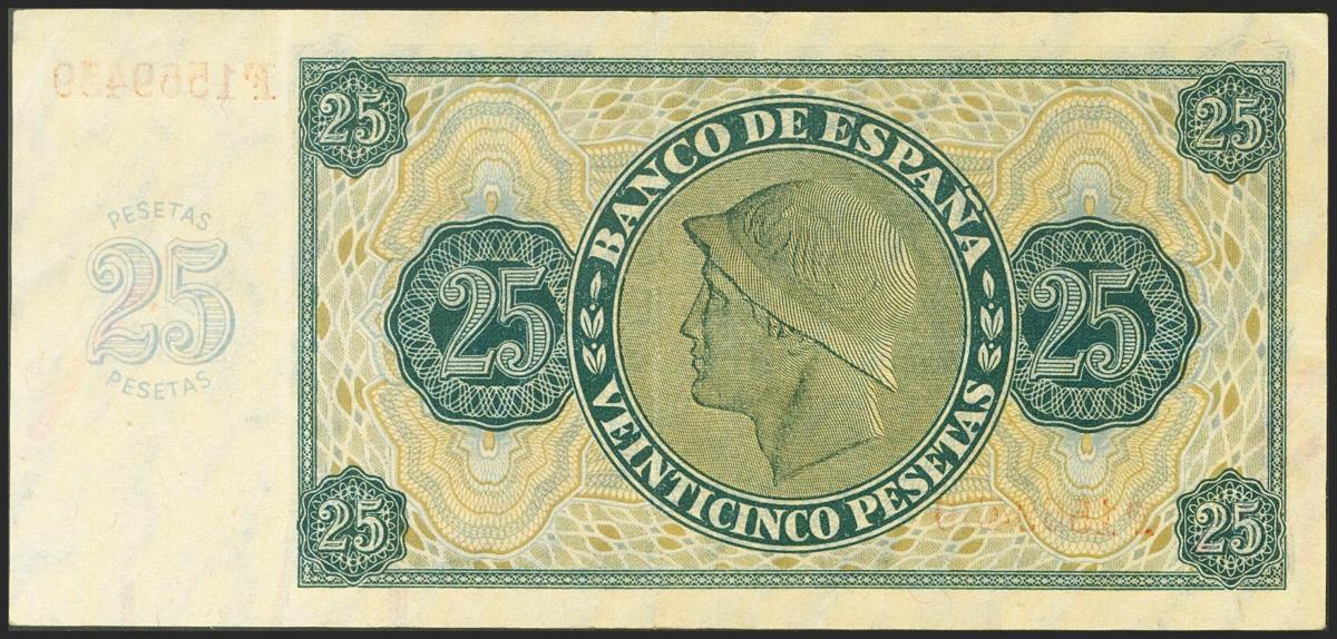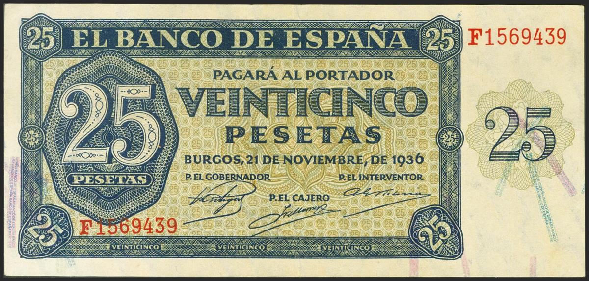 25 pesetas. November 21, 1936. Series F. (Edifil 2021: 419a). It retains some of its original sizing. Extremely Fine.