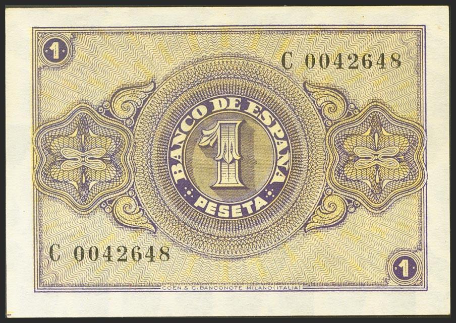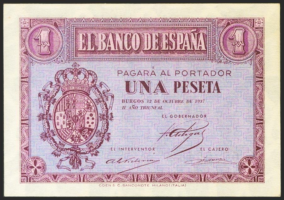 1 Peseta. October 12, 1937. Series C. (Edifil 2021: 425a). Original sizing. Uncirculated.