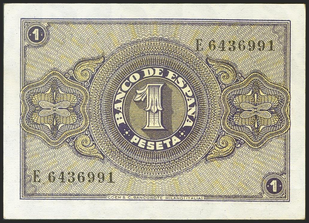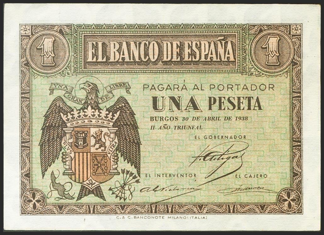 1 Peseta. April 30, 1938. Series E. (Edifil 2021: 428a). Original sizing. Almost Uncirculated.