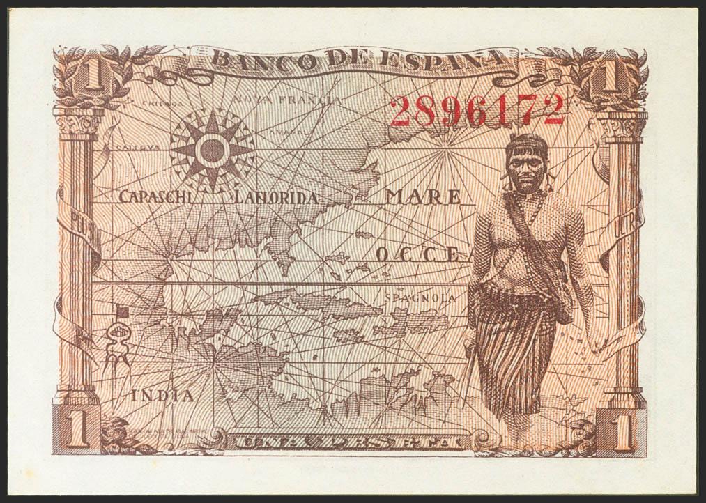1 Peseta. June 15, 1945. No series. (Edifil 2021: 448). Original sizing. Uncirculated.