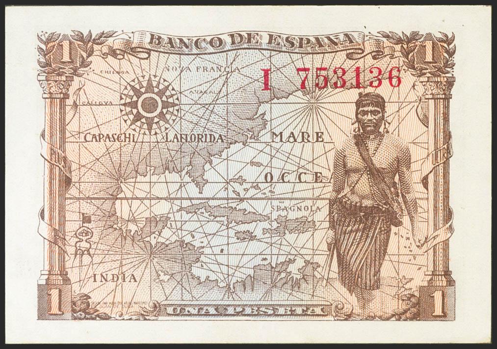 1 Peseta. June 15, 1945. Series I. (Edifil 2021: 448a). It retains much of its original sizing. Good Extremely Fine.