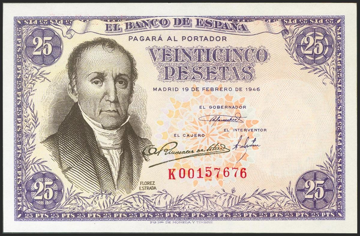 25 pesetas. February 19, 1946. Series K. (Edifil 2021: 450a). Original sizing. Uncirculated.