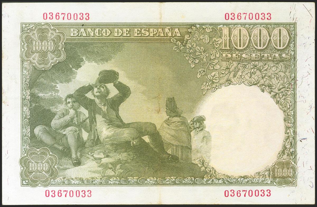 1000 Pesetas. November 4, 1949. (Edifil 2021: 458). It retains some of its original sizing. Almost Extremely Fine.