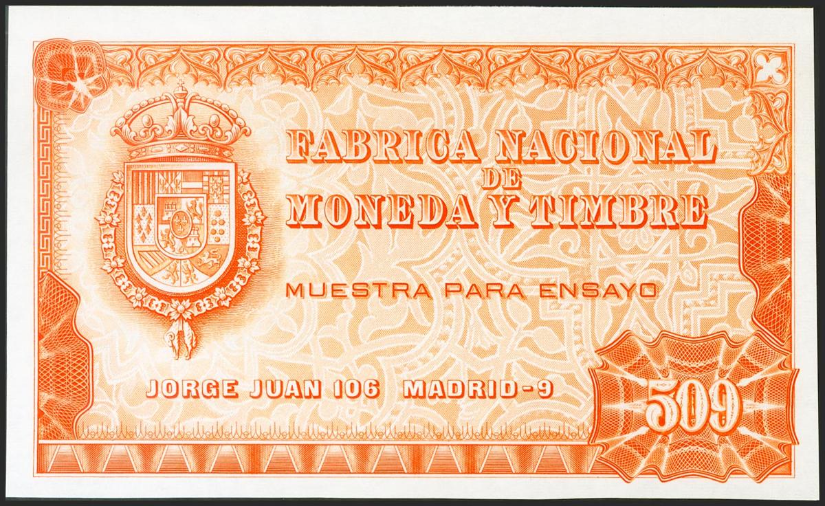 (1970ca). "Sample for Assay", with the number 509, made in the FNMT and only the obverse and in orange. Very rare. Uncirculated.