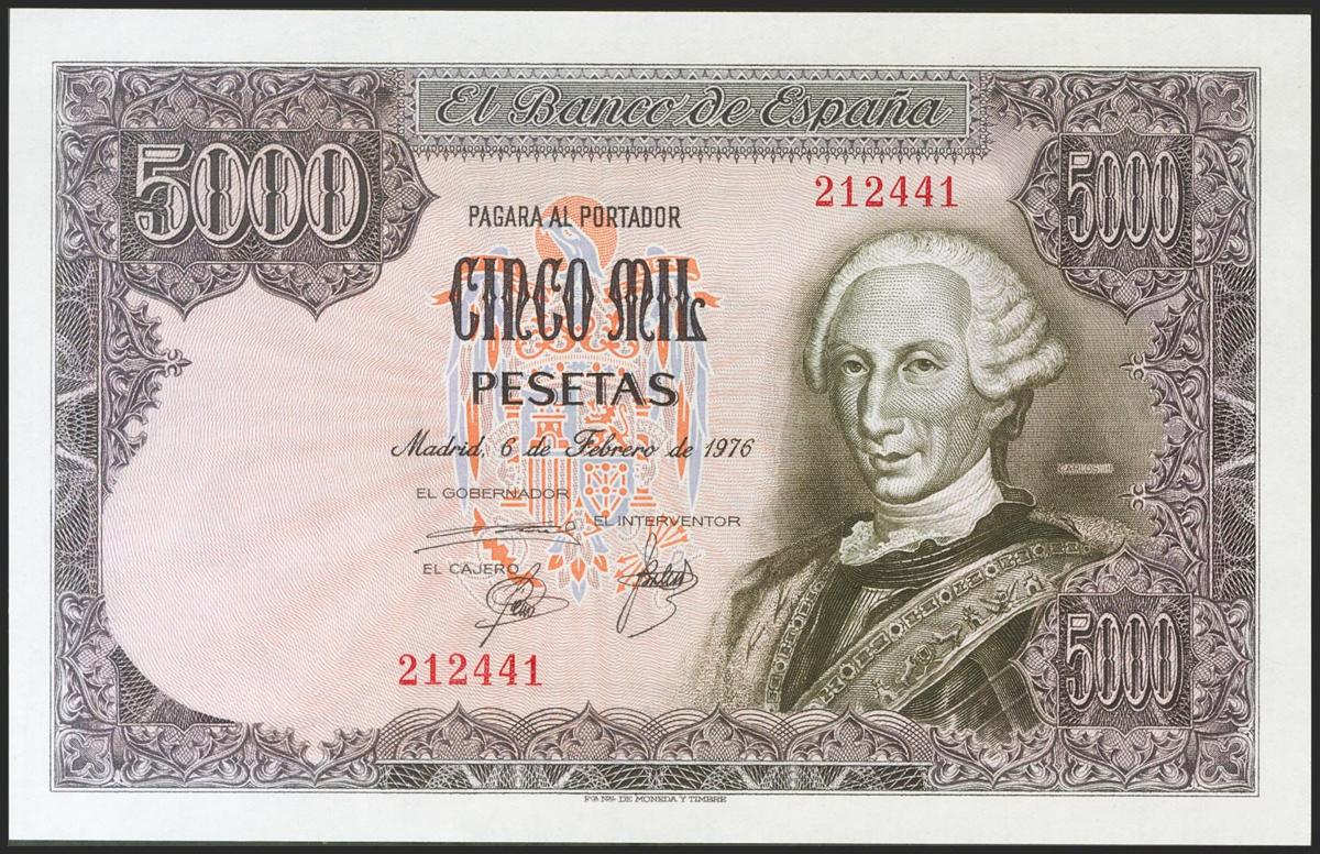5000 Pesetas. February 6, 1976. No series. (Edifil 2017: 475). Original sizing. Uncirculated.
