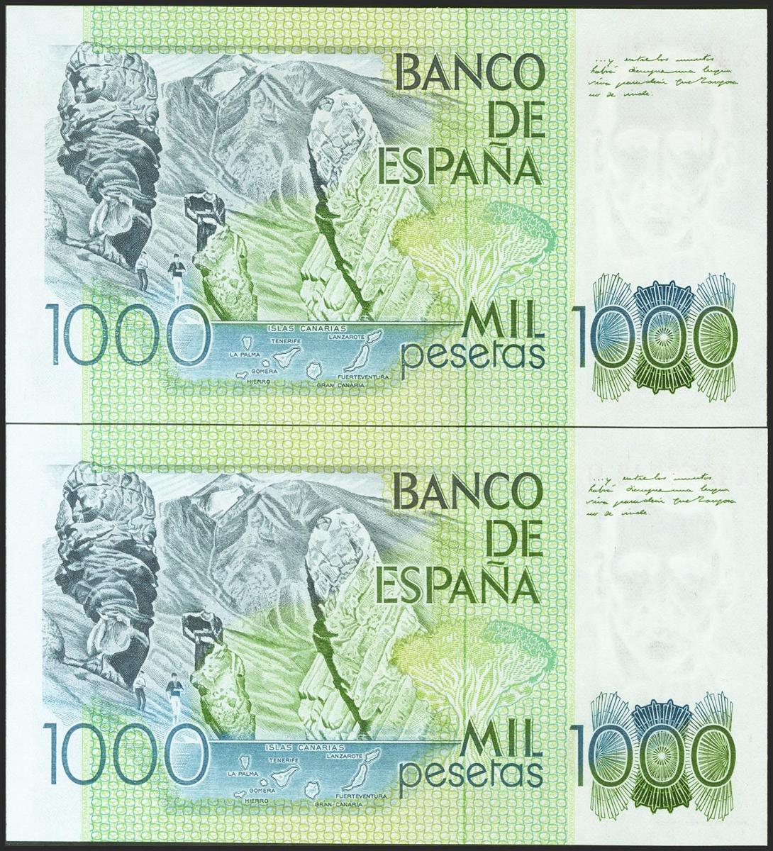 1000 Pesetas. October 23, 1979. Correlative couple. XD series. (Edifil 2021: 477a). Uncirculated.