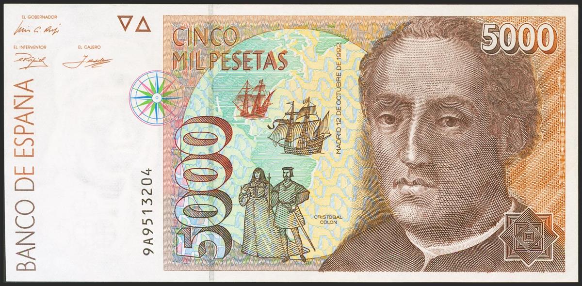 5000 Pesetas. October 12, 1992. Special series 9A. (Edifil 2021: 484b). Almost Uncirculated.