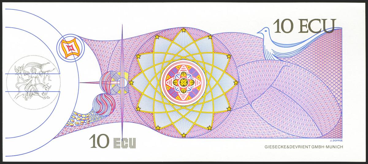 10 Ecu. 1992. SPECIMEN. Promotional ticket of the single European currency, the Ecu, exhibited in the pavilion of the European Community on the occasion of the Universal Exhibition in Sevilla. Very rare. Almost Uncirculated.