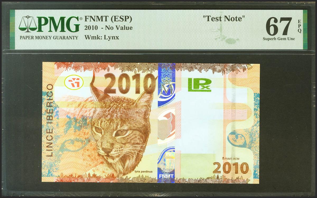 Proof of FNMT ticket, issued in 2010. Not catalogued. PMG67EPQ package. Uncirculated.