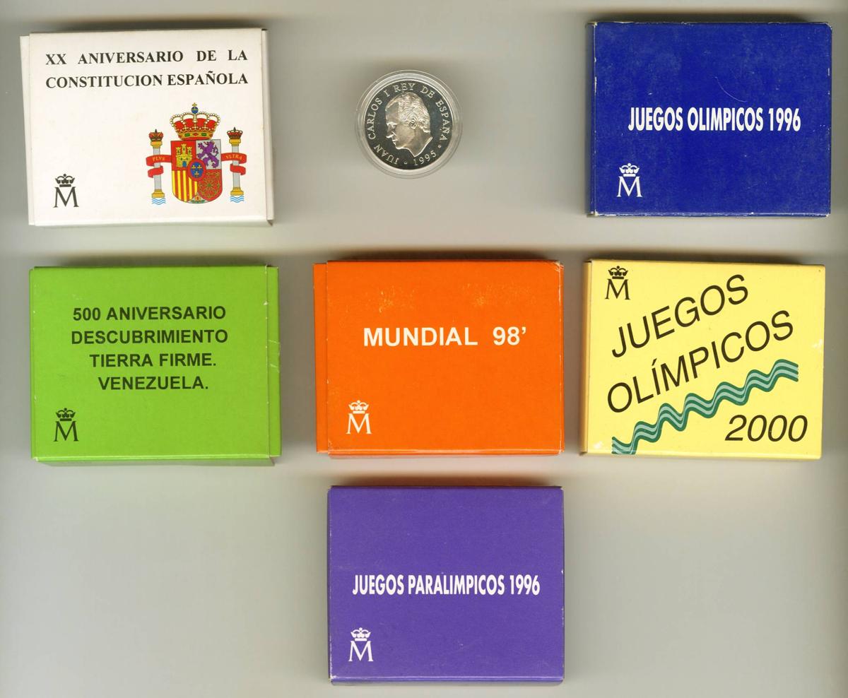 JUAN CARLOS I (1975-2014). Set of 7 silver coins (6 of them with official cases and certificates of authenticity) with values of 1000 Pesetas (6) and 3 Euros (1). PROOF. TO EXAMINE.