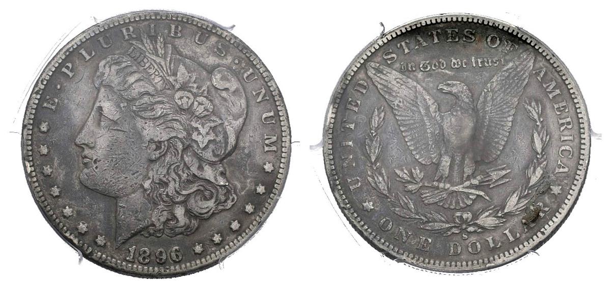 UNITED STATES. 1 Dollar (Ar. 26.73g/38mm)*. 1896. San Francisco S. (Km#110). VF Details. Encapsulated by PCGS. *Theoretical weight and measure.