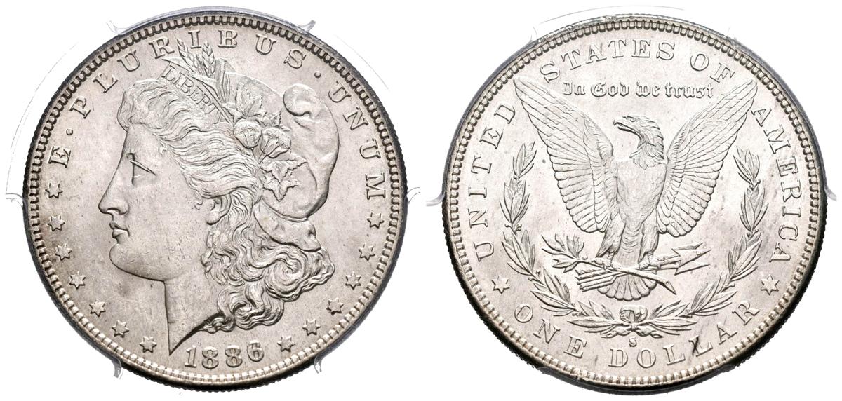 UNITED STATES. 1 Dollar (Ar. 26.73g/38mm)*. 1886. San Francisco S. (Km#110). Encapsulated by PCGS MS62. *Theoretical weight and measure.