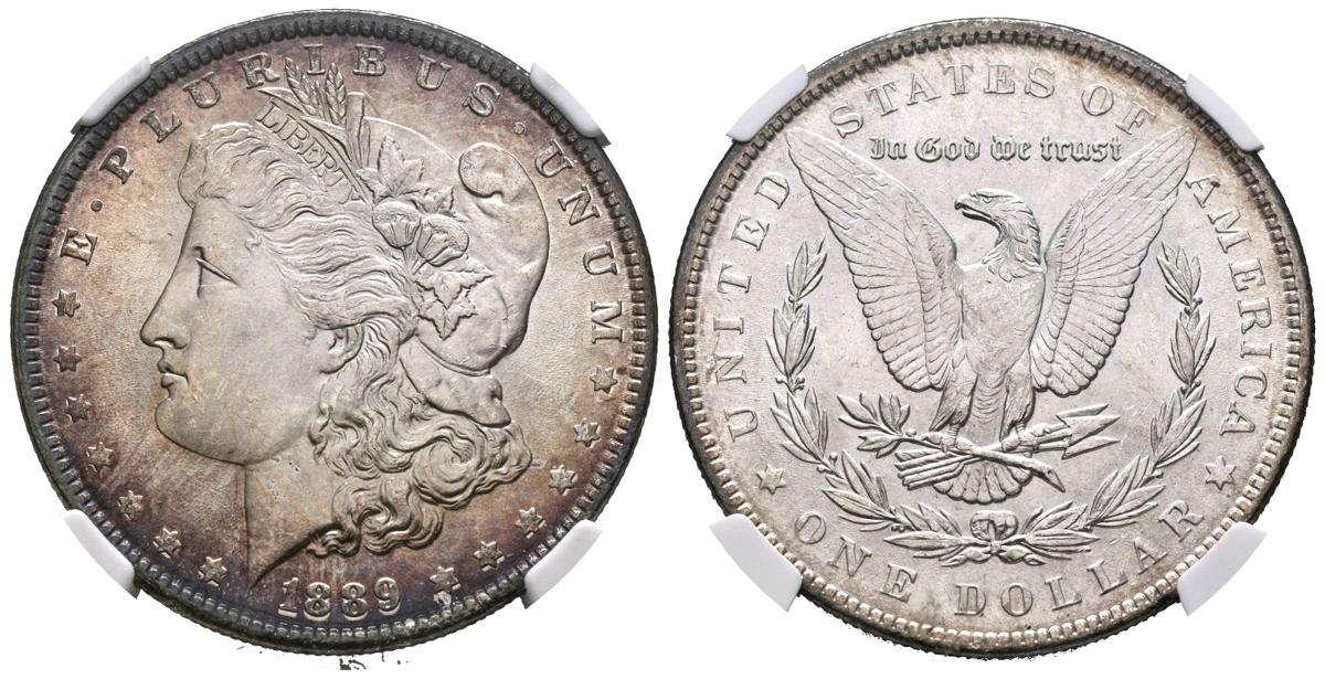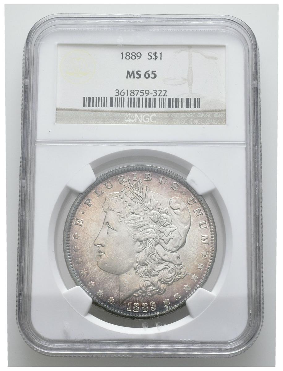 UNITED STATES. 1 Dollar (Ar. 26.73g/38mm)*. 1889. Philadelphia. (Km#110). Encapsulated by NGC MS65. *Theoretical weight and measure.