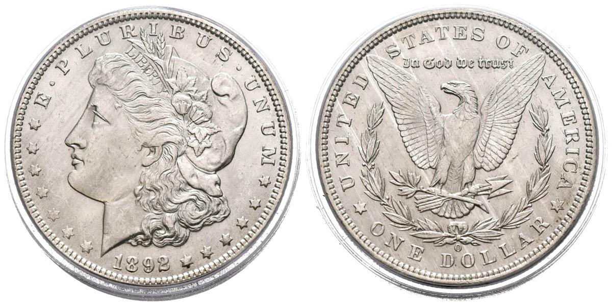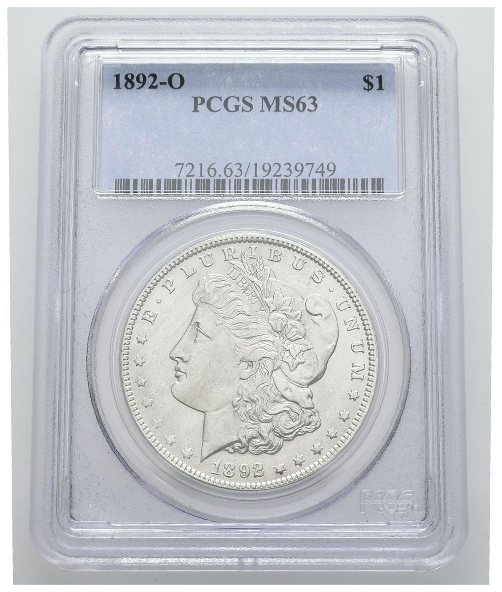 UNITED STATES. 1 Dollar (Ar. 26.73g/38mm)*. 1892. New Orleans W. (Km#110). Encapsulated by PCGS MS63. *Theoretical weight and measure.