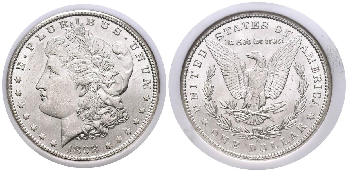 UNITED STATES. 1 Dollar (Ar. 26.73g/38mm)*. 1898. New Orleans W. (Km#110). Encapsulated by NGC MS63. *Theoretical weight and measure.