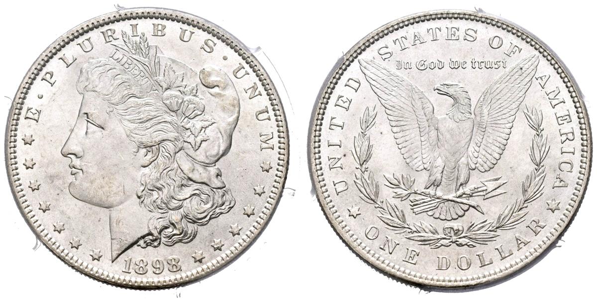 UNITED STATES. 1 Dollar (Ar. 26.73g/38mm)*. 1898. Philadelphia. (Km#110). Encapsulated by PCGS MS64. *Theoretical weight and measure.