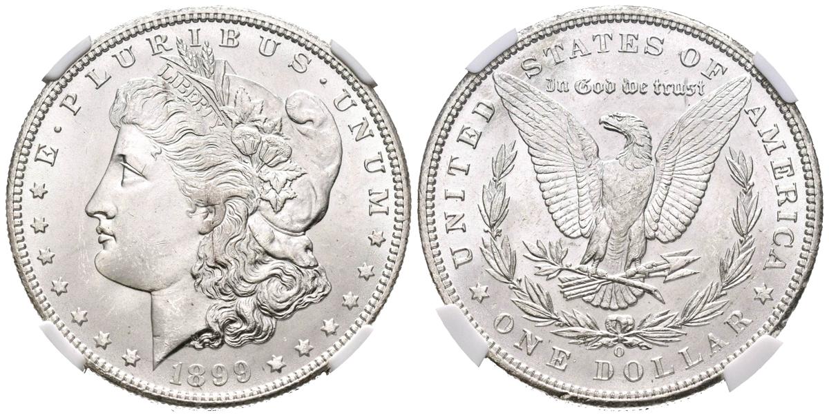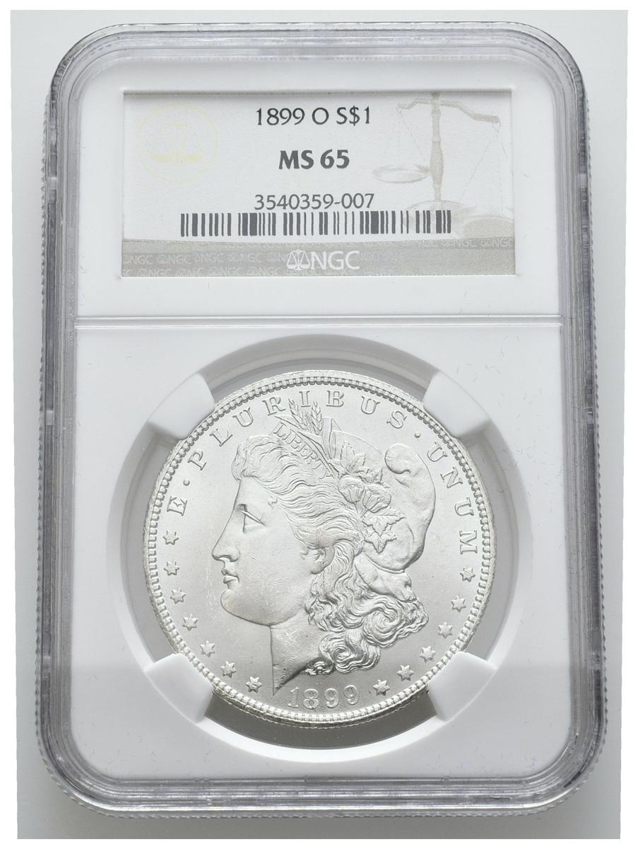 UNITED STATES. 1 Dollar (Ar. 26.73g/38mm)*. 1899. New Orleans W. (Km#110). Encapsulated by NGC MS65. *Theoretical weight and measure.