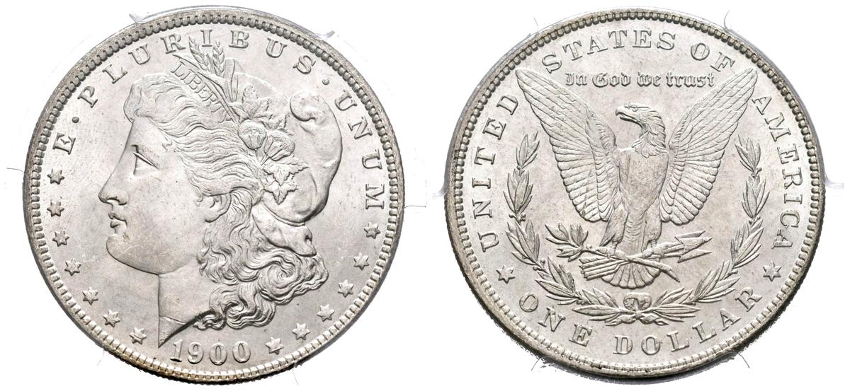 UNITED STATES. 1 Dollar (Ar. 26.73g/38mm)*. 1900. Philadelphia. (Km#110). Encapsulated by PCGS MS64+. *Theoretical weight and measure.