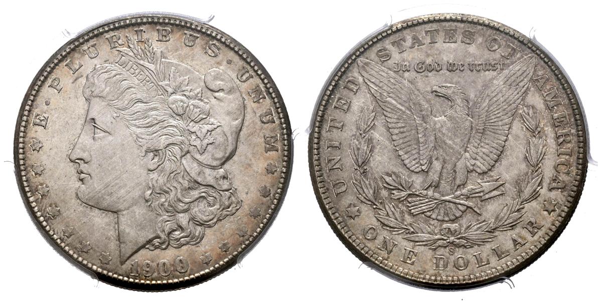 UNITED STATES. 1 Dollar (Ar. 26.73g/38mm)*. 1900. San Francisco S. (Km#110). Encapsulated by PCGS AU58. *Theoretical weight and measure.