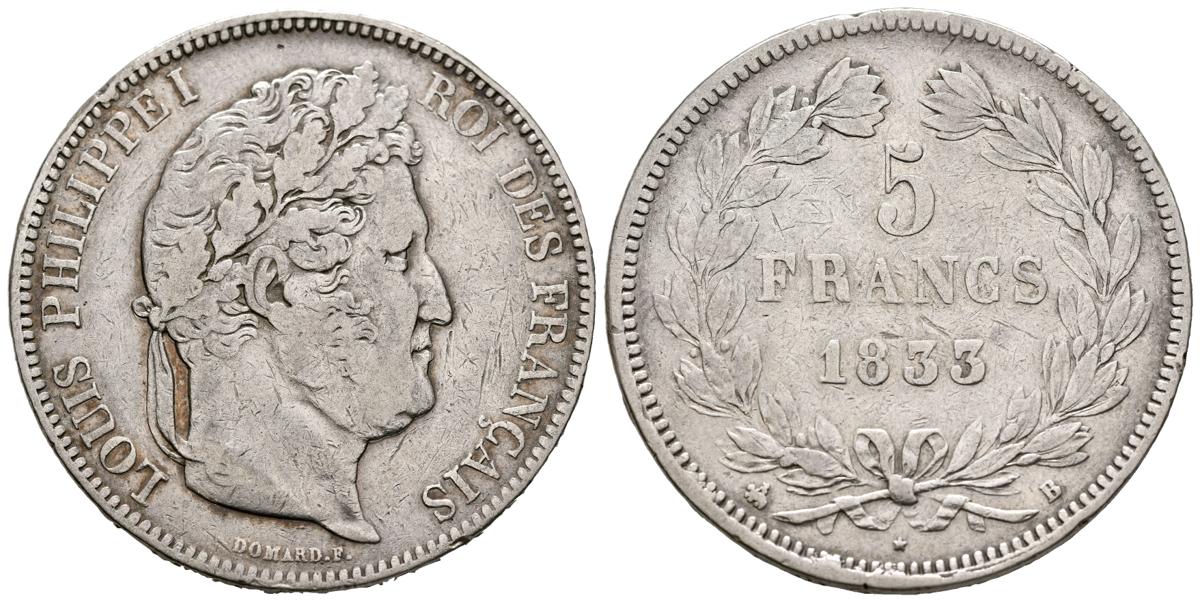 FRANCE. 5 Francs. (Ar. 24.79g/38mm). 1835. Rouen B. Luis Felipe I. (Km#749). Almost Very Fine.