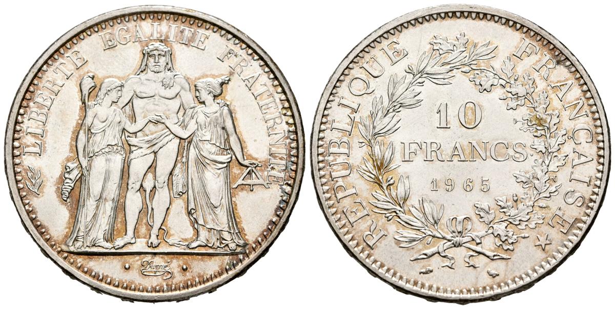 English FRANCE. 10 Francs. (Ar. 25.01g/37mm). 1965. (Km#932). Extremely Fine.