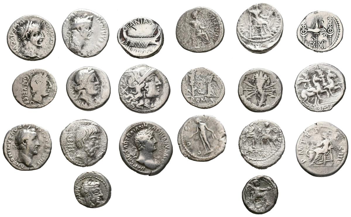English ROMAN REPUBLIC and ROMAN EMPIRE. Set of 10 silver coins of which there are two Quinarios and 8 Denarii, among which is a covered Denarius of Marco Antonio and two Denarius of Tiberius stand out. TO EXAMINE.