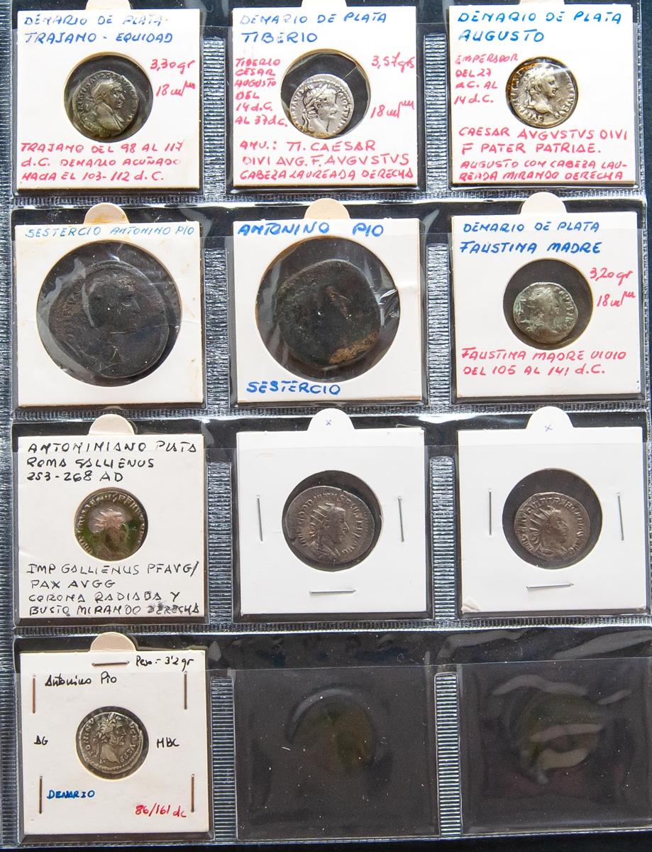 ROMAN EMPIRE. Set of 22 bronze and silver coins of different Roman emperors, highlighting a denarius of Tiberius and one of Augustus. TO EXAMINE.