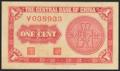CHINA (REPUBLIC). 1 Cent. 1939. Central Bank of China. (Pick: 224b). About Extremely Fine.