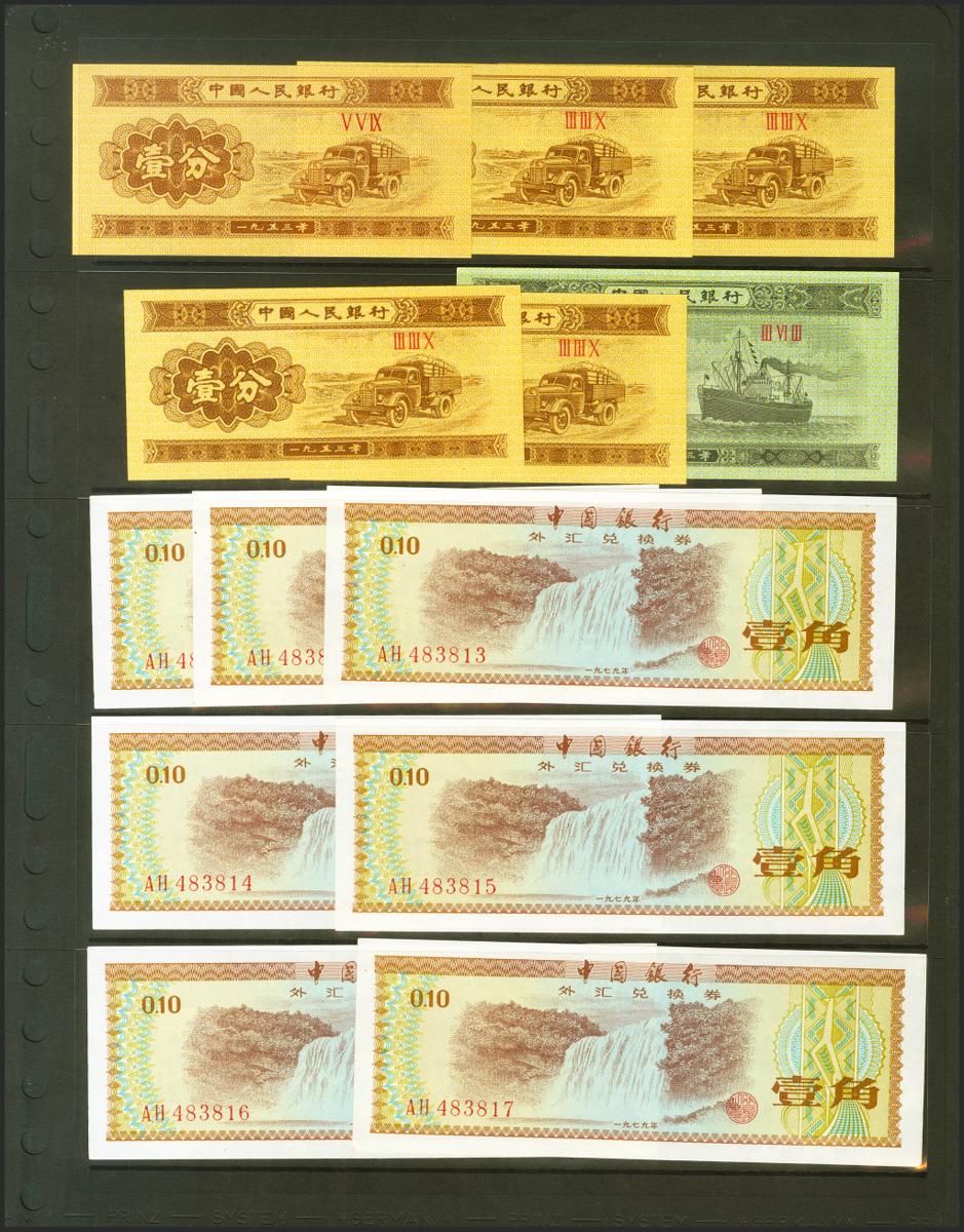 CHINA. (1980ca). Lot of 13 banknotes of two different types. Uncirculated.
