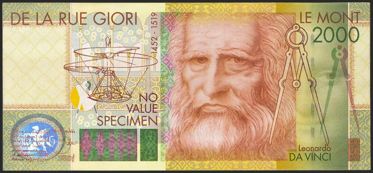 FRANCE. (no value). 2000. SPECIMEN. (Pick: Unlisted). Unusual Test Note?. Uncirculated.