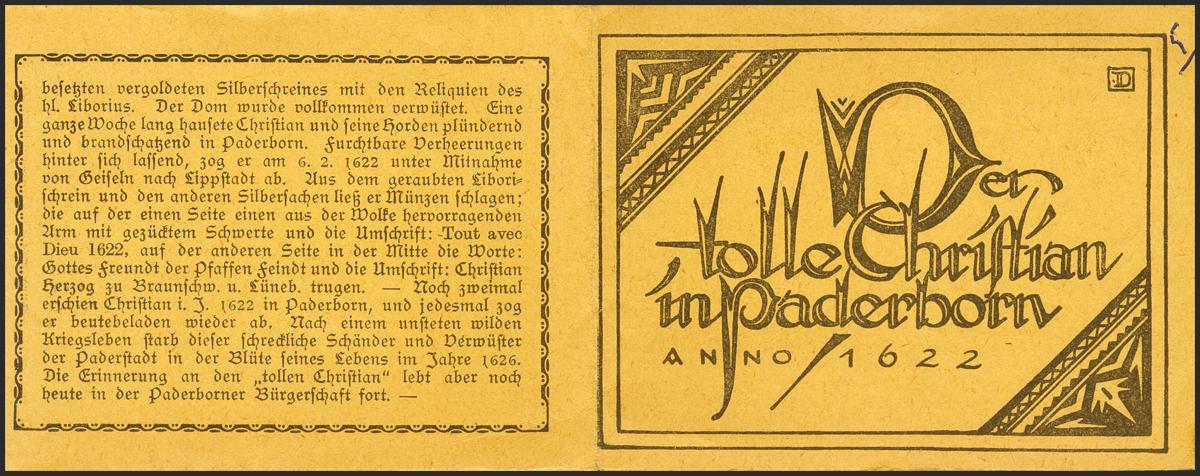 GERMANY. NOTGELD (PADERBORN). Two complete sets of 4 and 5 banknotes in the original envelope: 25 Pfennig, 50 Pfennig (2), 75 Pfennig (2), 1 Mark (2), 2 Mark (2) from 1921. (Grabowski / Mehl: 1043.2 and 1043.3). Uncirculated.