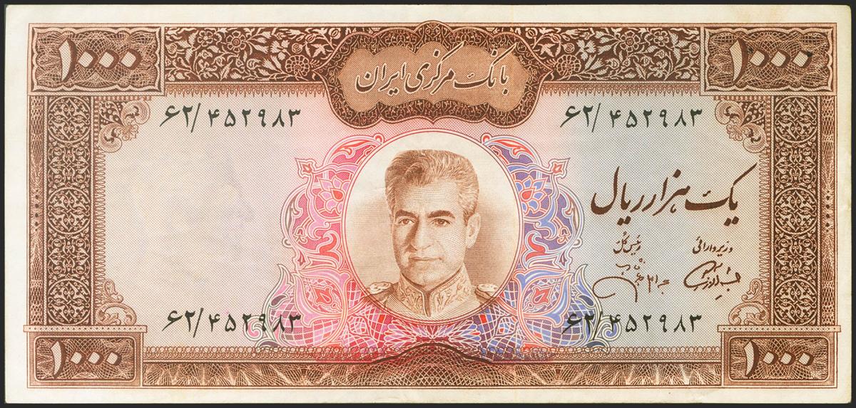 IRAN. 1000 Rials. (1971ca). (Pick: 94c). Pinholes. Very Fine.