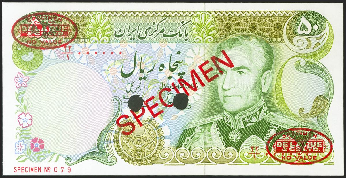 IRAN. 50 Rials. 1974. SPECIMEN. (Pick: 101s). Uncirculated.