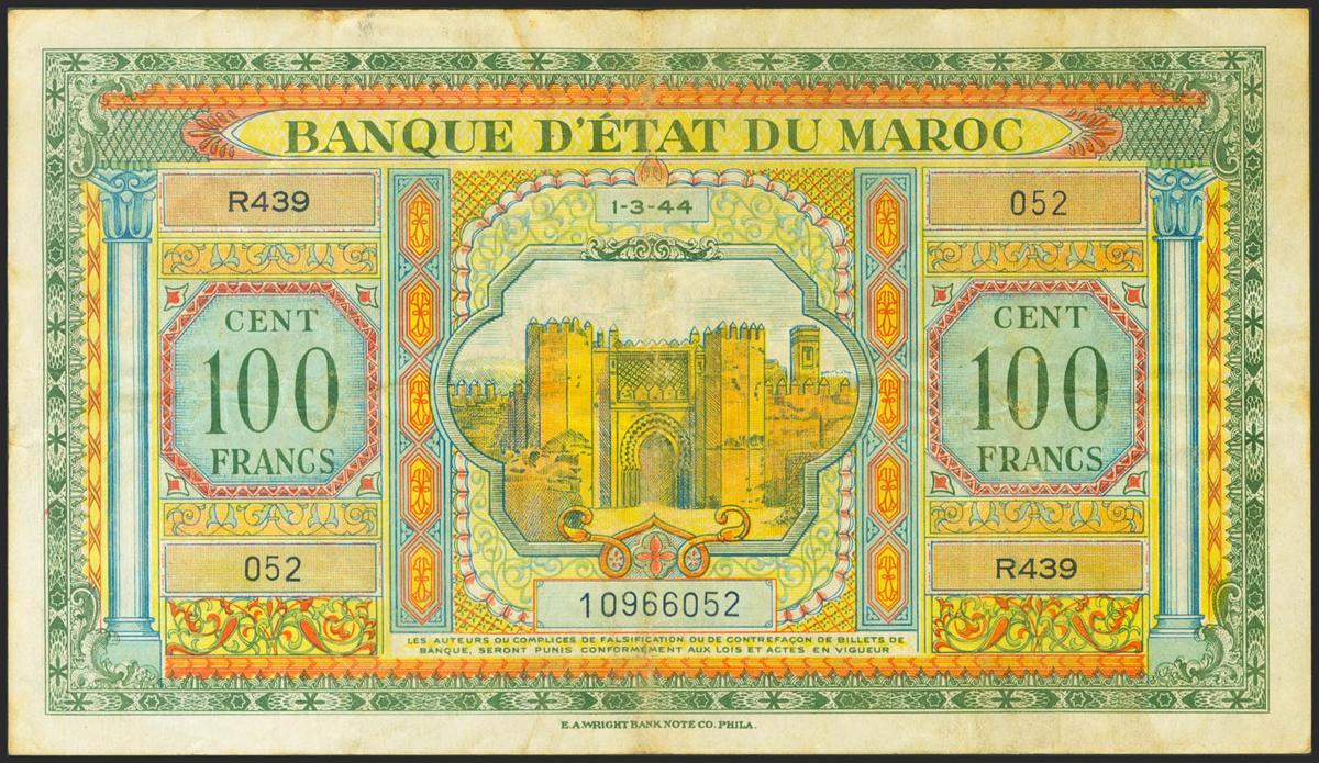 MOROCCO. 100 Francs. 1 May 1943. (Pick: 27). Very Fine+.