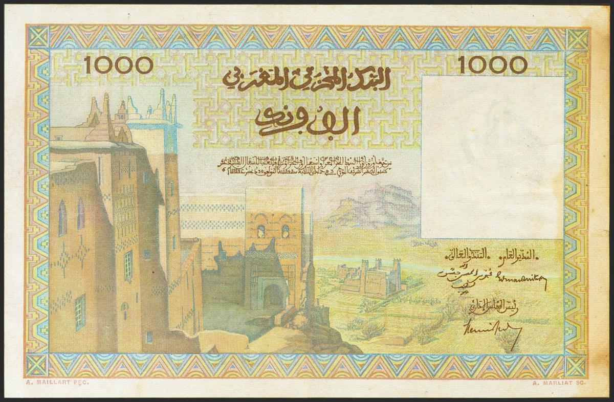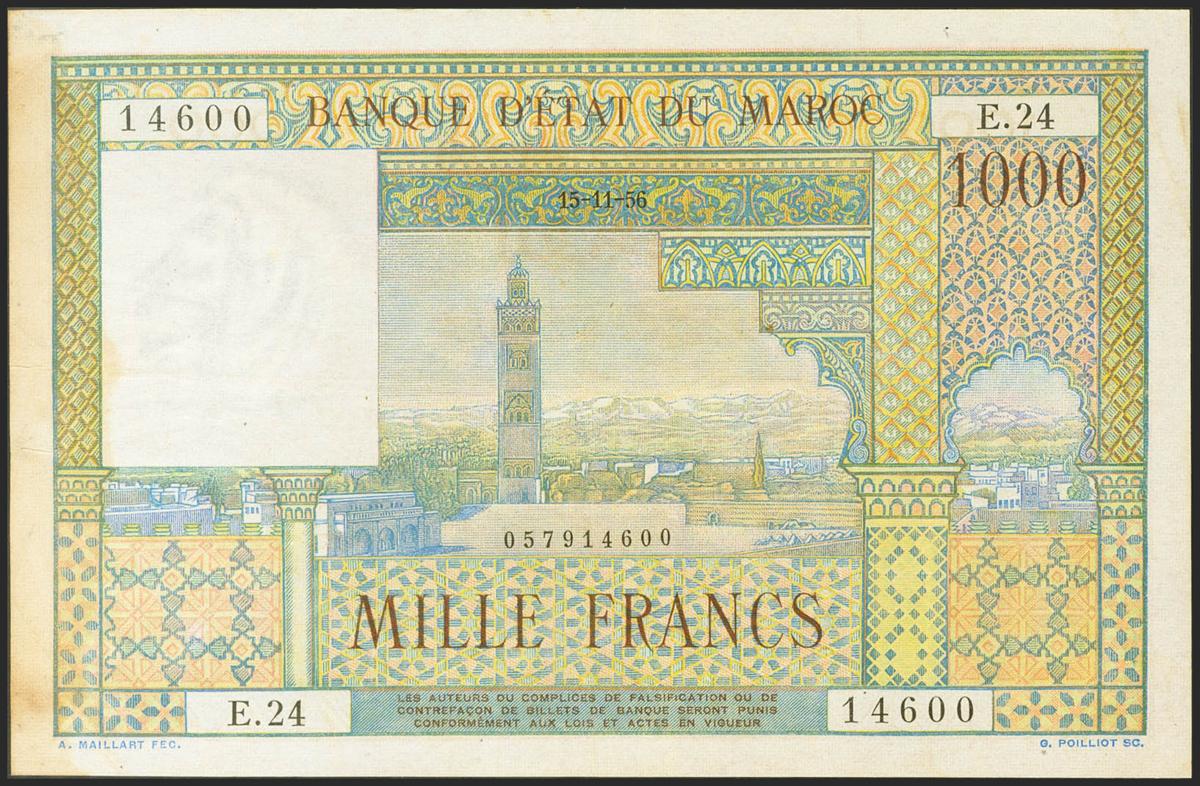 MOROCCO. 1000 Francs. 15 November 1956. (Pick: 47). Fine-.