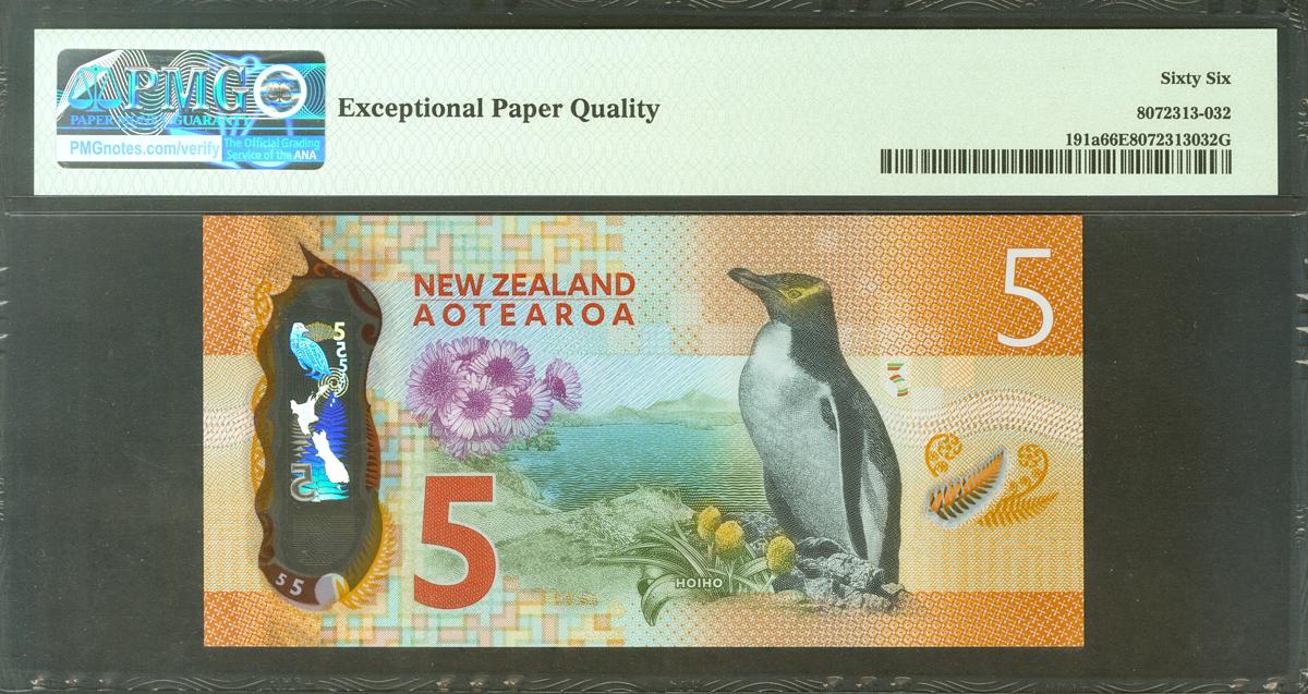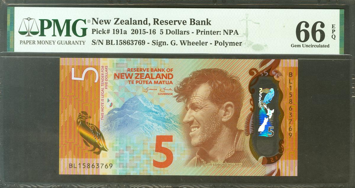 NEW ZEALAND. 5 Dollars. 2015. (Pick: 191a). SC. Encapsulado PMG66EPQ.