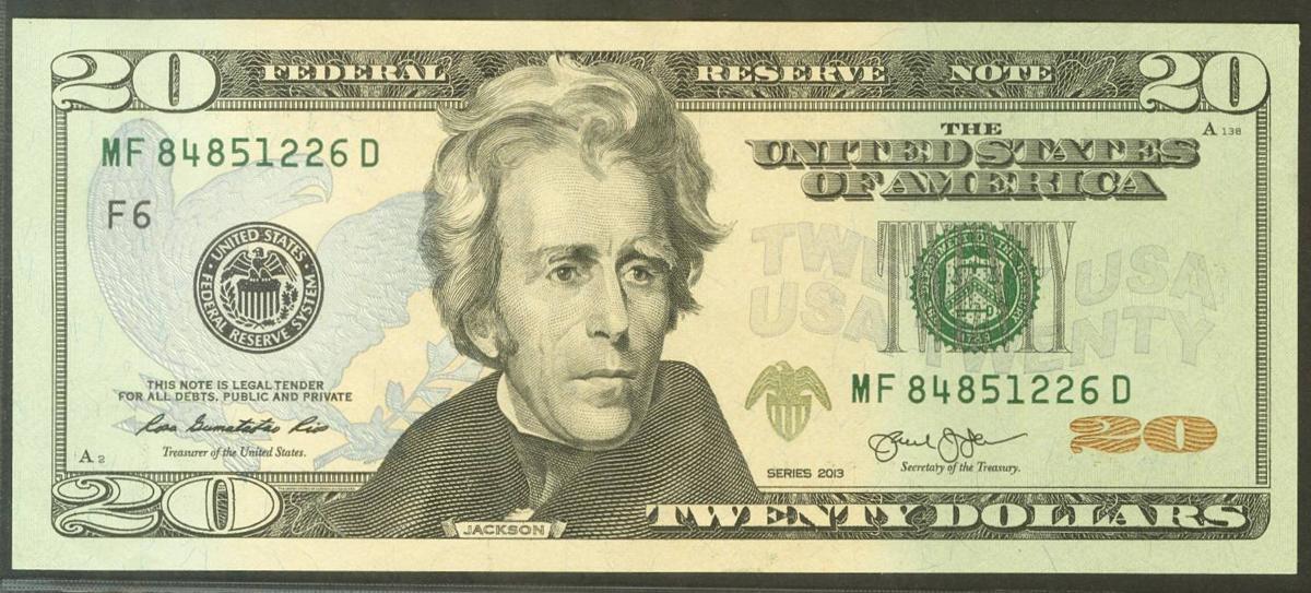 USA. 20 Dollars. Federal Reserve Note. Serial number MF-D. 2013. (Friedberg: 2097-D, Pick: 514). Uncirculated.