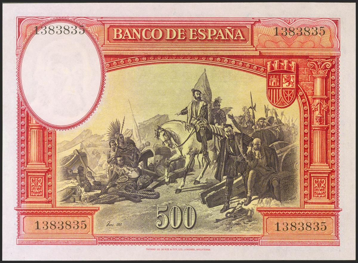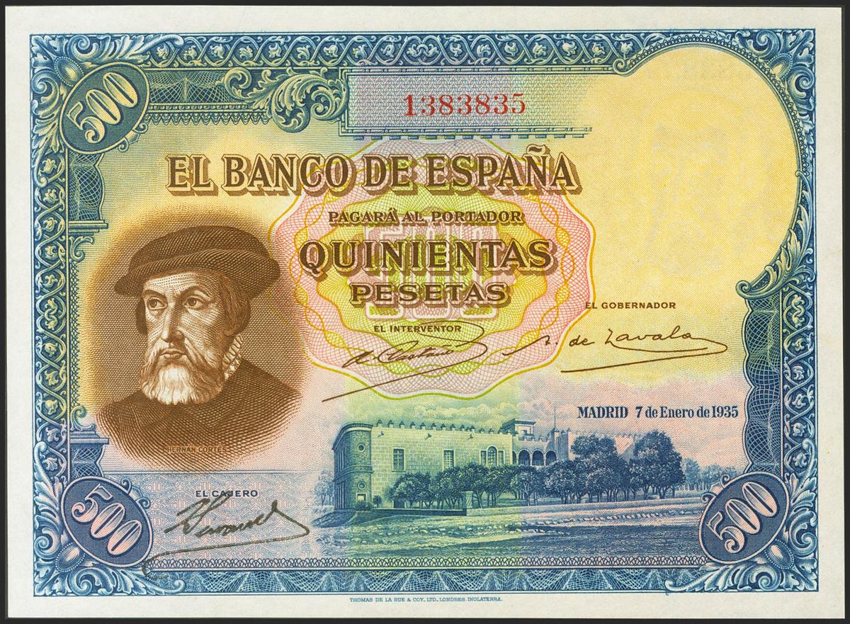500 pesetas. January 7, 1935. No series. (Edifil 2021: 365, Pick: 89). original sizing Uncirculated.
