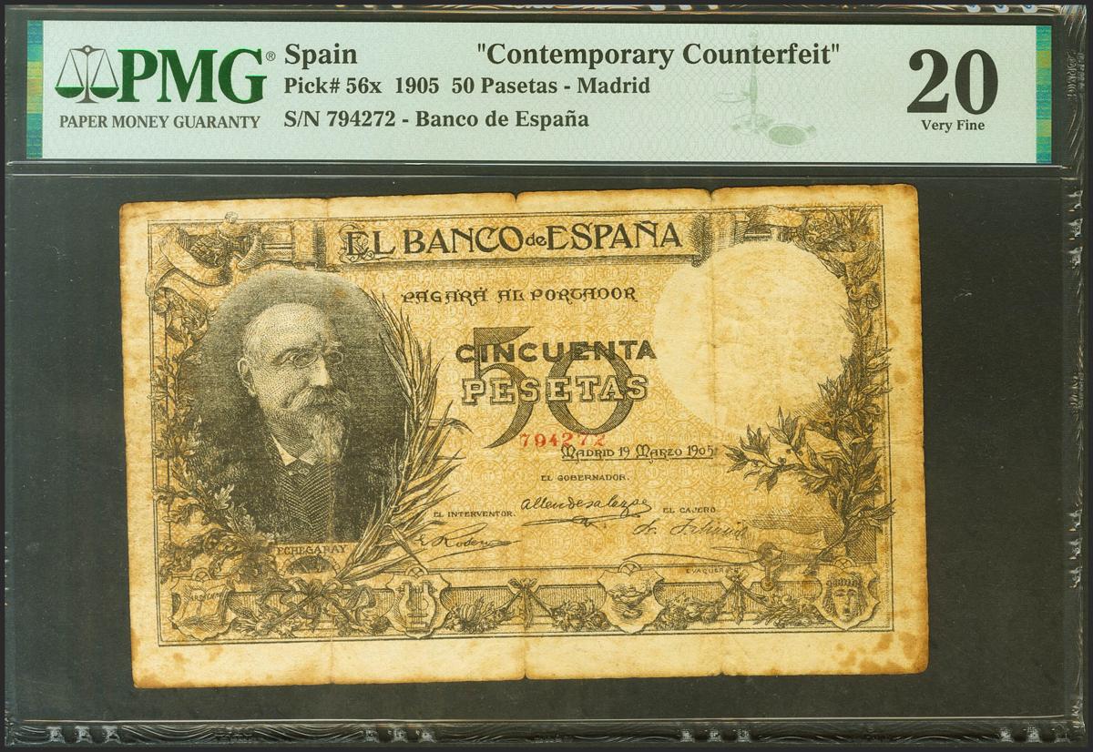 English 50 pesetas. March 19, 1905. False of the Period. No serie. (Edifil 2021: 312F). very rare Almost Very Fine. PMG20 package.