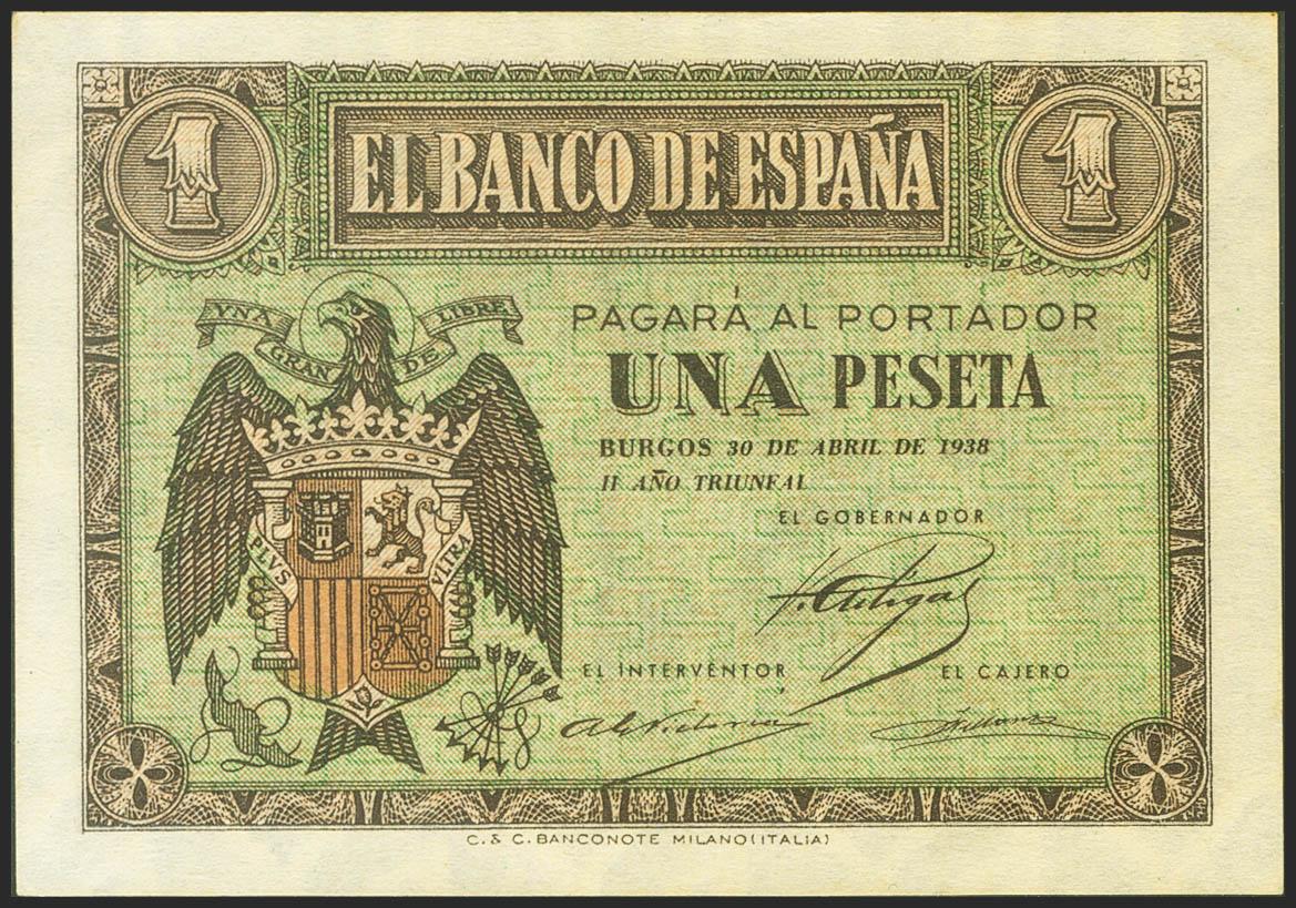1 peseta. April 30, 1938. Series G. (Edifil 2021: 428a). original sizing Almost Uncirculated.