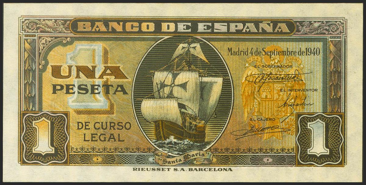 1 peseta. September 4, 1940. Series H. (Edifil 2021: 442a). original sizing Uncirculated.