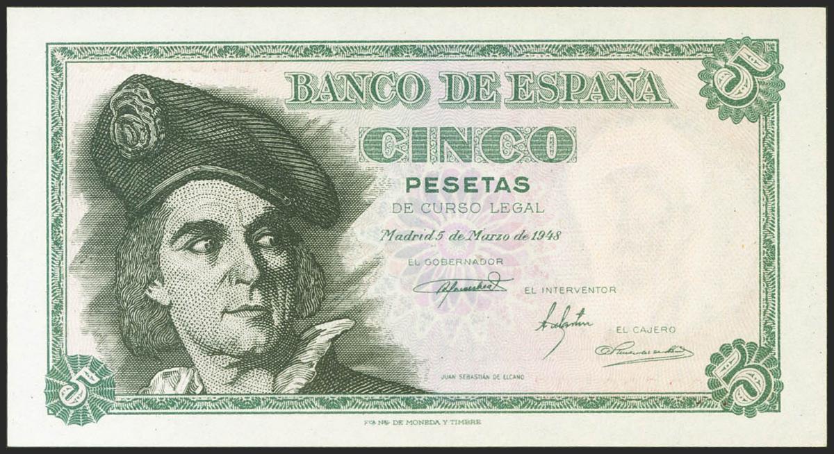 5 pesetas. March 15, 1948. Series G. (Edifil 2021: 455a). original sizing Good Extremely Fine.