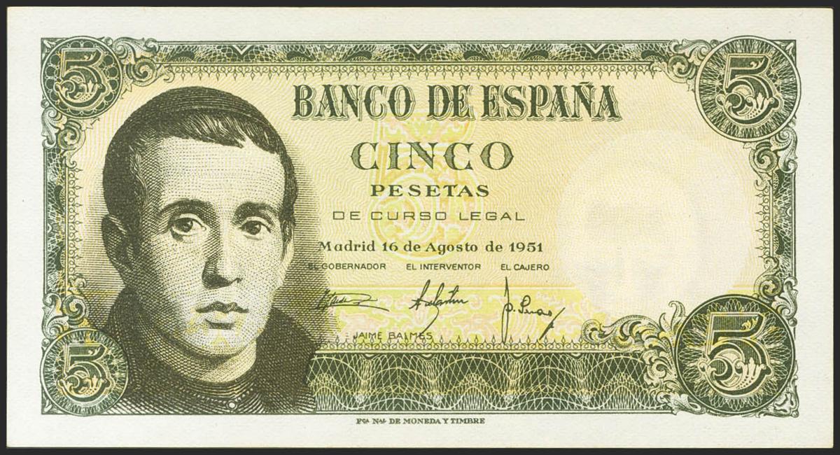 5 pesetas. April 12, 1947. Series 1H. (Edifil 2021: 459a). original sizing Uncirculated.