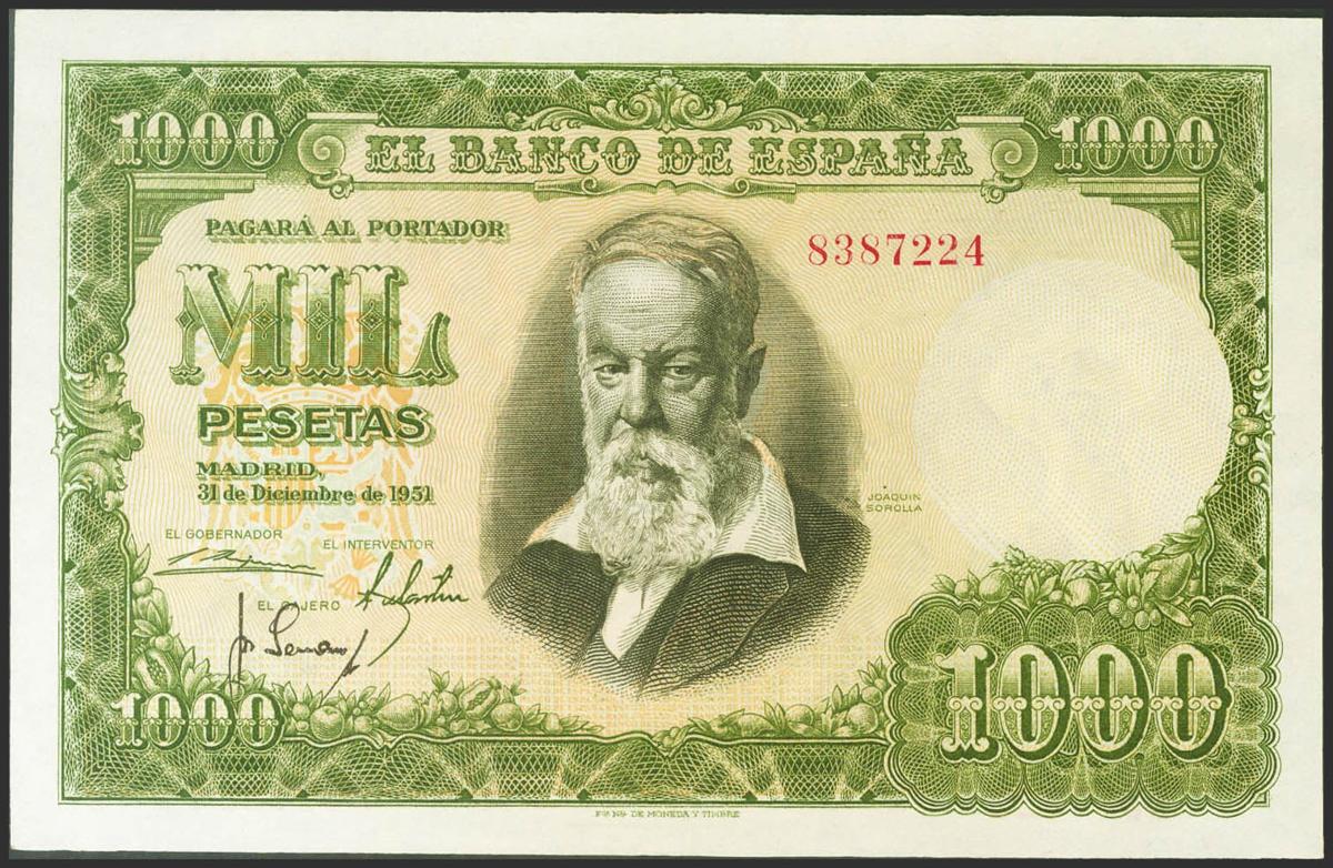 1000 pesetas. December 31, 1951. No series. (Edifil 2021: 463). Good Extremely Fine.