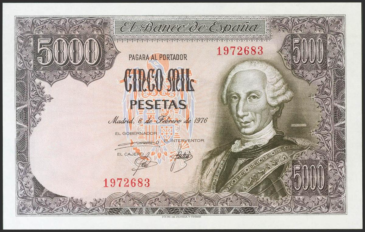 5000 pesetas. February 6, 1976. No series. (Edifil 2017: 475). original sizing Uncirculated.