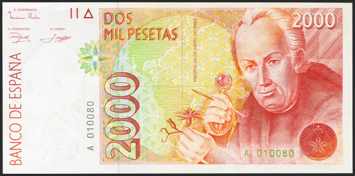 2000 pesetas. April 24, 1992. Series A. (Edifil 2021: 482a). Almost Uncirculated.
