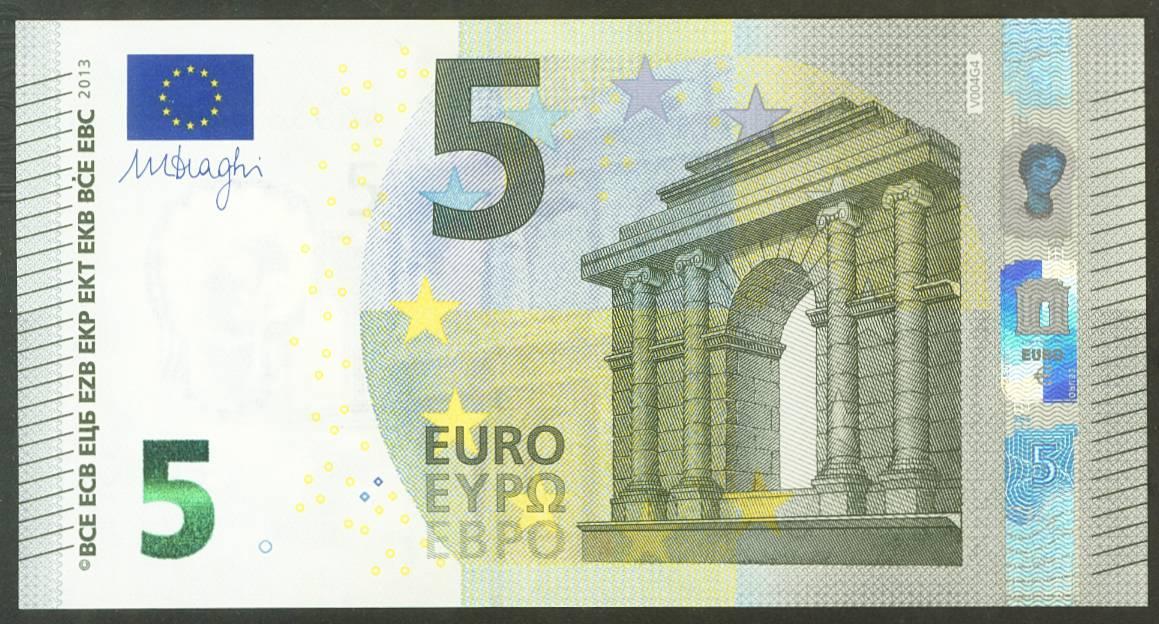 5 euros. May 2, 2013. Signature Draghi. Series V (Spain). (Edifil 2021: 493). Uncirculated.