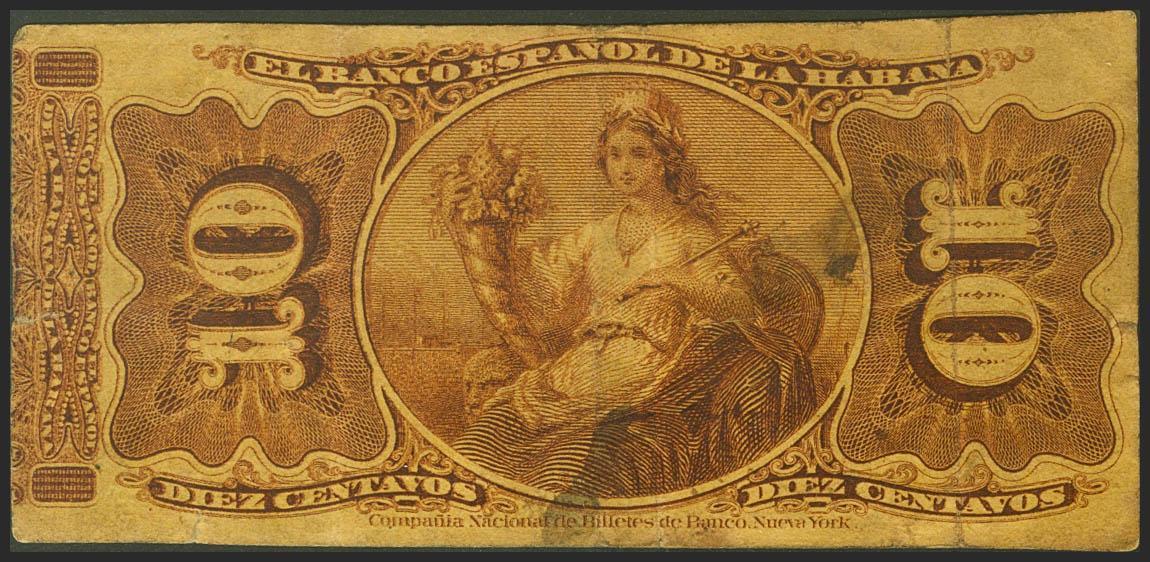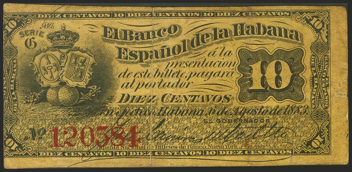 SPANISH BANK OF HAVANA. 10 cents. May 15, 1876. Series B. (Edifil 2021: 46). Fine.