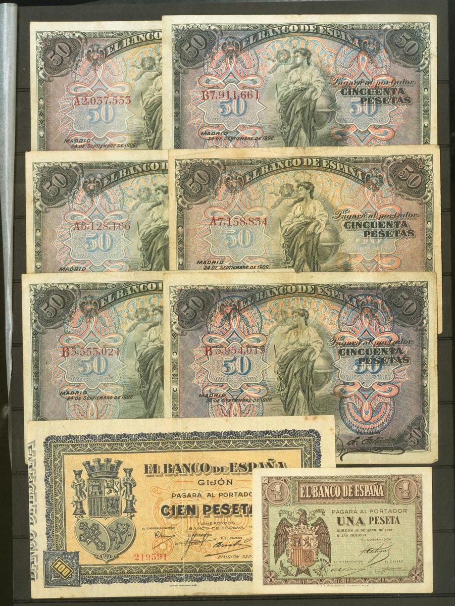 Set of 35 banknotes of the Bank of Spain of different issues and in various qualities, highlighting an attempt to complete all the series issued for 100 Pesetas on November 21, 1936. TO BE EXAMINED.